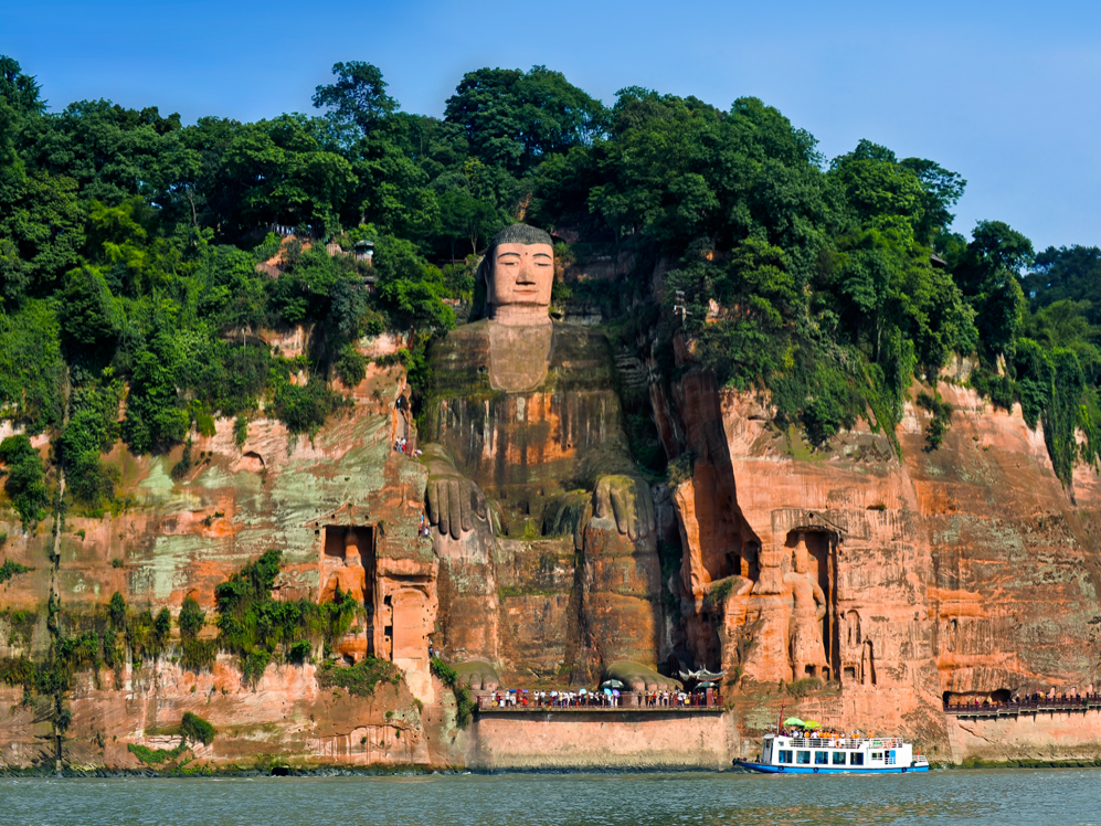 樂山大佛,又名凌云大佛,位于四川省樂山市南岷江東岸凌云寺側,瀕大渡河、青衣江和岷江三江匯流處。大佛為彌勒佛坐像,通高71米,是中國最大的一尊摩崖石刻造像。