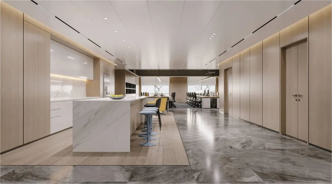 該辦公樓是集辦公,信息化,員工配套,培訓會議,企業(yè)展廳為一體的綜合性辦公樓,包含2棟建筑,總面積約4.8萬㎡。其中:1號樓地上建筑面積1.8萬㎡,2號樓地上建筑面積2.8萬㎡,博物館建筑面積2000㎡。博大的施工范圍涵蓋一層接待大堂;二三層信息化機房與系統(tǒng)運維;四五層職工餐廳;六至十二層科技辦公樓層;十三至十四層為企業(yè)特色辦公樓層;十五層培訓會議樓層;十六層文化活動中心,局部區(qū)域挑空作為羽毛球場地;十七層信合史館等在內(nèi)的全部施工區(qū)域。